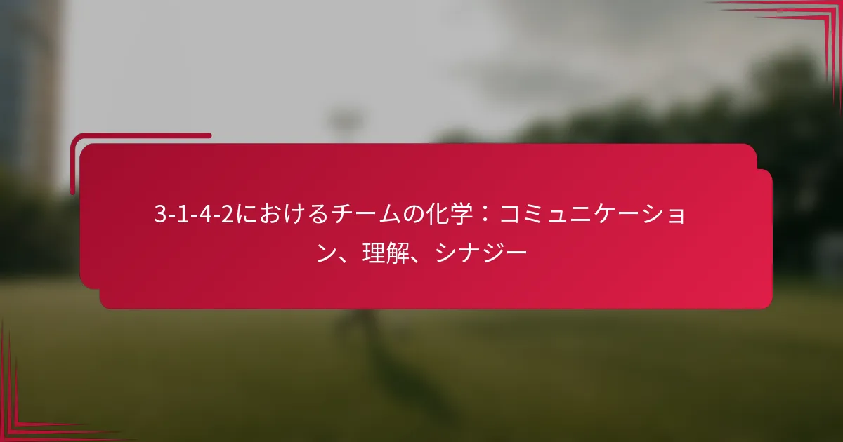 3-1-4-2フォーメーションにおけるチームの化学反応は、選手間の調和の取れた相互作用を通じてパフォーマンスを最大化するために重要です。これは、効果的なコミュニケーション、個々の役割に対する深い理解、そしてシナジーに依存しており、これらはすべてフォーメーションの戦術的要求を成功裏に実行するために不可欠です。 3-1-4-2フォーメーションにおけるチームの化学反応とは何か? 3-1-4-2フォーメーションにおけるチームの化学反応とは、選手間の調和の取れた相互作用を指し、これが彼らの集団的なパフォーマンスを向上させます。これは、効果的なコミュニケーション、相互理解、そしてシナジーを含み、これらはこの特定のフォーメーションの戦術的要求を実行するために重要です。 スポーツにおけるチームの化学反応の定義 スポーツにおけるチームの化学反応とは、選手間に発展する絆であり、これにより彼らは効果的に協力して働くことができます。これは、共有された目標、信頼、そして団結感を含み、これらは試合の結果に大きな影響を与える可能性があります。強い化学反応は、選手が互いの動きや決定を予測することができるため、フィールド上でのパフォーマンス向上につながります。 3-1-4-2フォーメーションの文脈において、選手には明確な役割があるため、化学反応はポジショナルディシプリンを維持し、複雑なプレーを実行するために重要です。互いの意図を読み取る能力は、接戦の状況で大きな違いを生むことがあります。 コミュニケーション、理解、シナジーの重要性 コミュニケーションはチームの化学反応の基盤であり、選手が戦術的指示や調整をリアルタイムで伝えることを可能にします。3-1-4-2のセットアップでは、明確なコミュニケーションが形を維持し、プレスや守備の動きを調整するのに役立ちます。選手は声を出し、反応する必要があり、全員がゲームプランに沿っていることを確認しなければなりません。 チームメイト間の理解は、より深い結びつきを育み、選手が互いの行動を予測できるようにします。この理解は、練習や共有された経験を通じて築かれ、シナジーを発展させるために不可欠です。シナジーは、チームの集団的な努力が個々の貢献の合計を超えるときに発生し、より流動的でダイナミックなプレーにつながります。 選手間の関係がチームパフォーマンスに与える役割 選手間の関係はチームパフォーマンスに大きな影響を与えます。強い絆は、フィールド上での信頼と協力を高めることができます。選手が互いをよく知っていると、困難な瞬間にお互いをサポートする可能性が高くなり、レジリエントなチームダイナミクスにつながります。3-1-4-2フォーメーションでは、役割が相互依存しているため、これらの関係が成功と失敗の違いになることがあります。 さらに、ポジティブな関係は対立を減らし、より楽しいチーム環境を育むことができます。この雰囲気は、選手が自由に自己表現することを促し、創造的なプレーや革新的な戦略を生み出し、対戦相手を驚かせることができます。 3-1-4-2における効果的なチームワークの要素 3-1-4-2フォーメーションにおける効果的なチームワークは、いくつかの重要な要素に依存しています。まず、選手はフォーメーション内での自分の役割と責任を明確に理解する必要があります。この明確さは構造を維持し、試合中の迅速な意思決定を可能にします。 次に、特定のシナリオに焦点を当てた定期的な練習やドリルが、調整力を高め、化学反応を築くことができます。チームは、ゲーム状況をシミュレートするエクササイズに参加し、選手が互いの強みと弱みを理解する機会を提供すべきです。 役割の明確化: … 3-1-4-2におけるチームの化学:コミュニケーション、理解、シナジーRead more